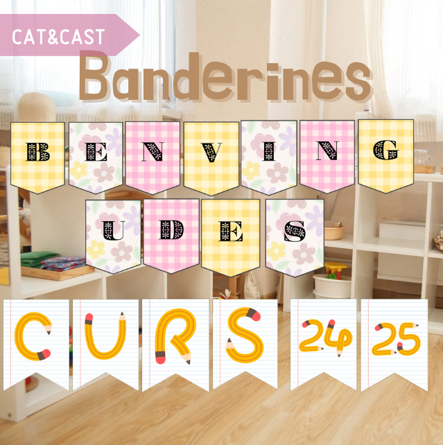 Banderines para decorar el aula, en catalán y castellano.